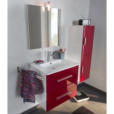 Ensemble graphic 90cm 2t rouge mat armoire toilette meuble vasque 757ttc. Le meuble de salle de bains doit etre a la fois a votre gout mais aussi et surtout tres pratique et adapte a la surface de votre piece deau. Selon votre espace et vos envies nous vous proposons des meubles de salle de bains de differentes dimensions mais aussi a poser ou a suspendre.