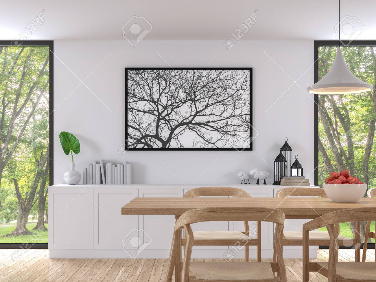 Image De Rendu 3d Moderne Salle A Manger Blanche Il Y A Du